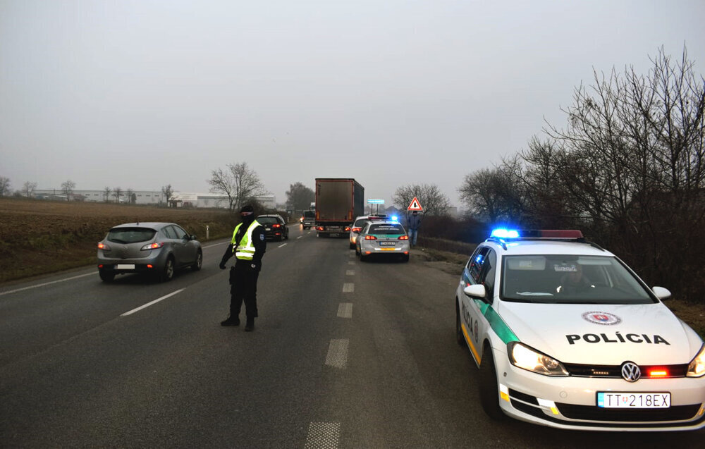 Kamióny blokujúce diaľničný hraničný priechod D2 Kúty- Brodské s Českou republikou pre nákladnú dopravu počas protestu Únie autodopravcov Slovenska (UNAS).
