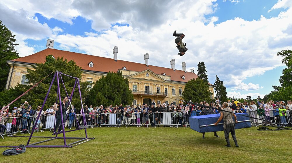 Na snímke rumunské zoskupenie Demian Artistic Group počas 13. ročníka medzinárodného festivalu nového cirkusu - Cirkul'art.